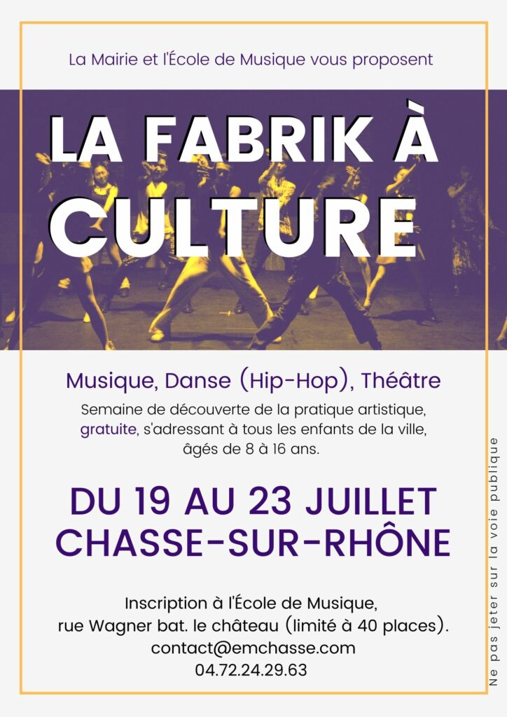 L’École de Musique organise cet été le stage « FABRIK À CULTURE » du 19 au 23…